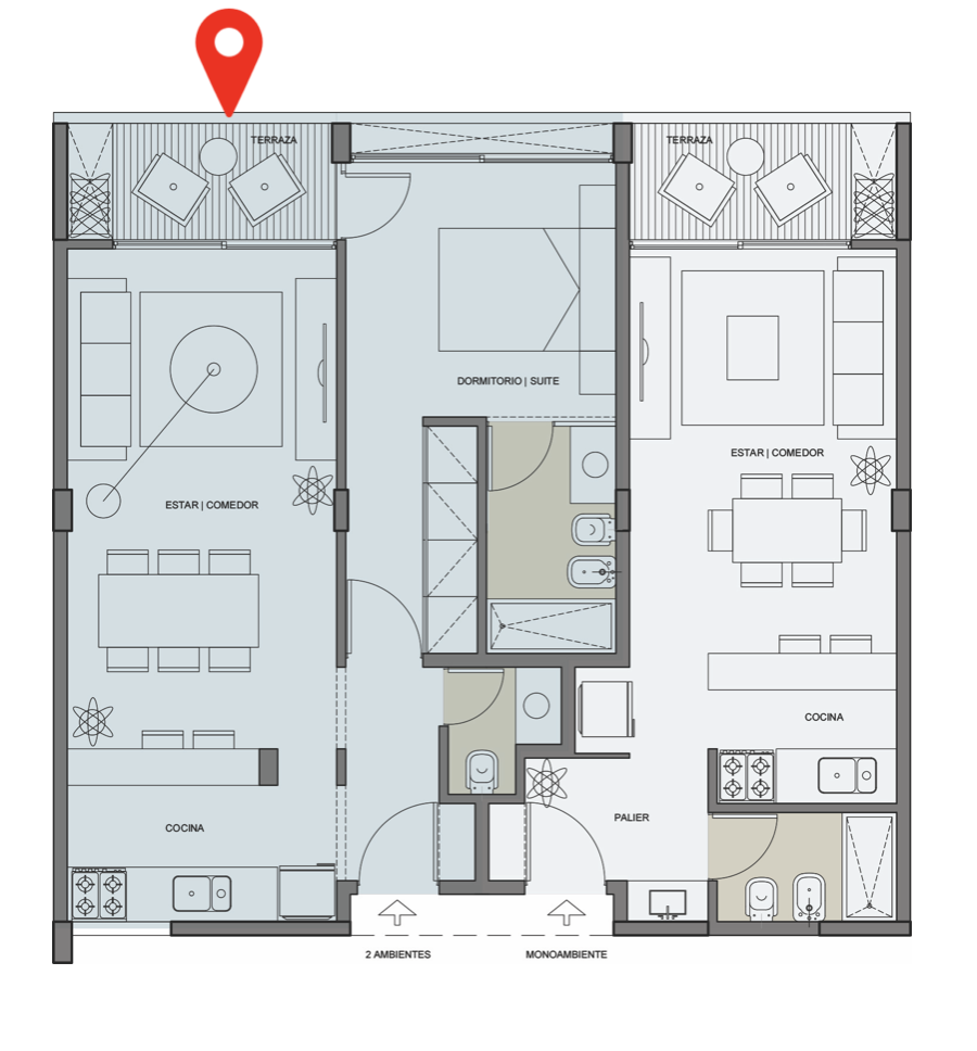 Diseñado con una arquitectura contemporánea que privilegia la luz, el aire y las visuales, ofrece unidades versátiles: monoambientes, 2, 3 y 4 ambientes, dúplex con terraza, penthouses, estudios, cocheras y bauleras.